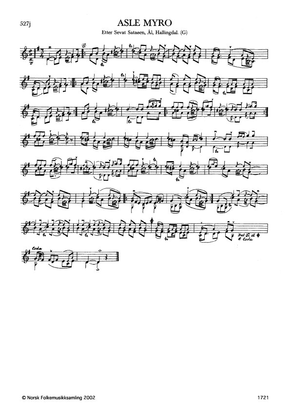 Asle Myro. Etter Sevat Sataøen, Ål, Hallingdal. G. 1428, 1963. NRK magn. 1876. Asle Myro var ein kjempekar og stordansar frå Hol i Hallingdal. I Hol har slåtten vore kalla "Åse Villand" og "Raggsteindalsslåtten". (Magne Myhren) Jfr. B. 940.