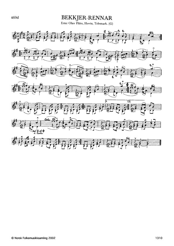 Bekkjer-rennar. Etter Olav Flåto, Hovin, Telemark. G. 1174, 1960. NRK magn. 1768. Bekkjer-rennar, form i Aust-Telemark for Bøkår-rennan. Sjå 469a.