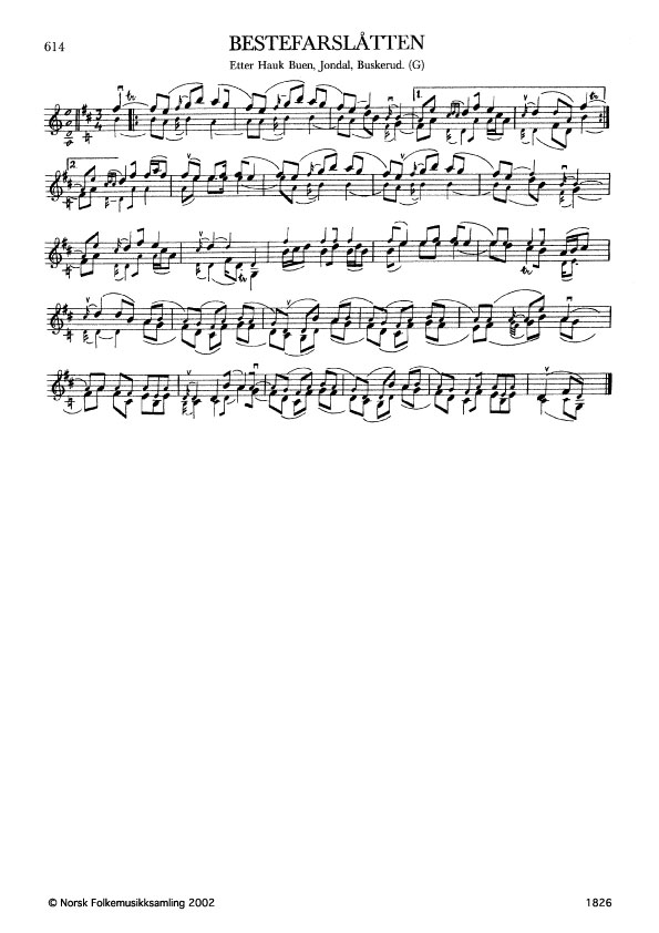 Bestefarslåtten. Etter Hauk Buen, Jondal, Buskerud. G. 1931, 1972. NRK magn. 54621.
