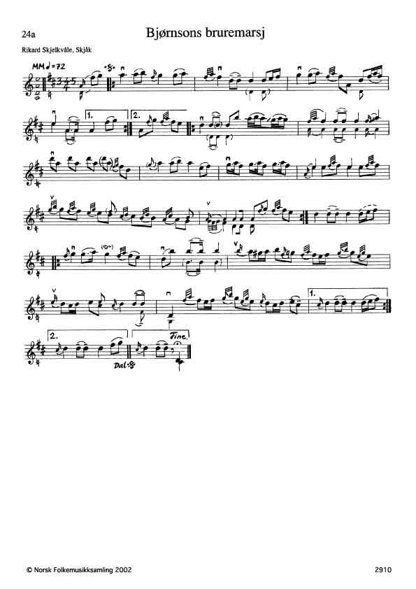 Lært som barn av Torkjel Aualé. R.S. mener navnet kommer av at Bjørnstjerne Bjørnson valgte denne slåtten til bruremarsj i sitt bryllup. Jf. Sandvik nr. 8.
