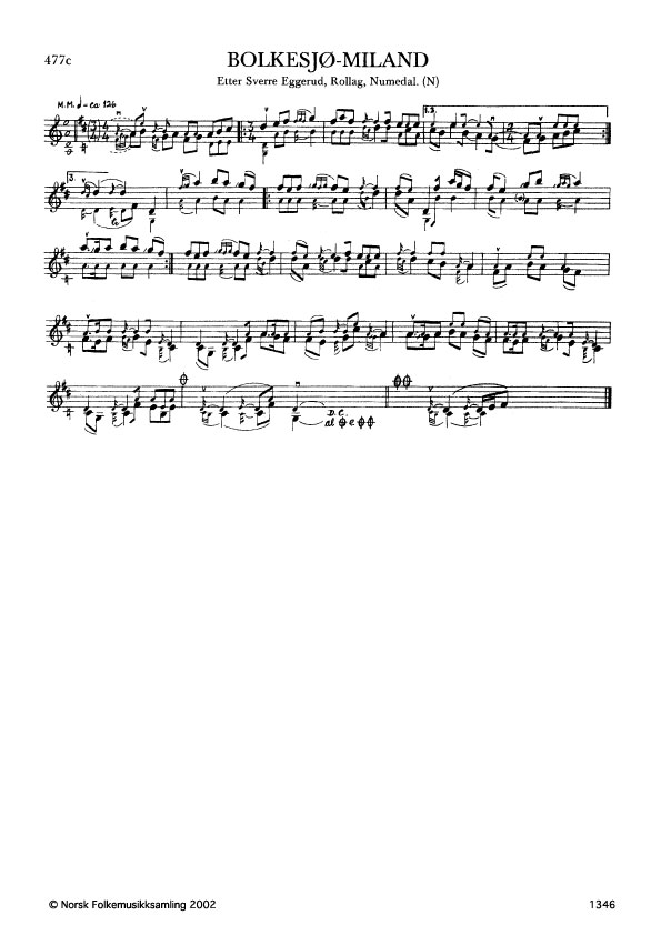 Bolkesjø-Miland. Etter Sverre Eggerud, Rollag, Numedal. N. 1976. Td. 1709. Eggerud lærde slåtten av Kristoffer Bråten, Rollag, i 1935.
