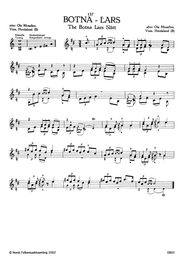 (Botna-Lars) B. 1029. Oppskr. 1908. Mosafinn lærde slåtten i 1845 av Anders Berge, Voss, Hordaland. Slåttenamnet er etter Lars Botnen, Guddal, Fjalir, Sunnfjord, som dei kalla Botna-Lars. Han var frå Torvund, Sogn. Botnen er siste garden i Guddal.