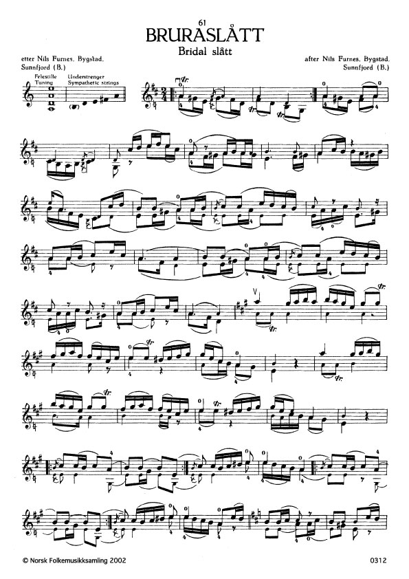 (Bruraslått) B. 1275. Oppskr. 1946. Furnes lærde slåtten av Ola Nås Bygland, Gaular.
