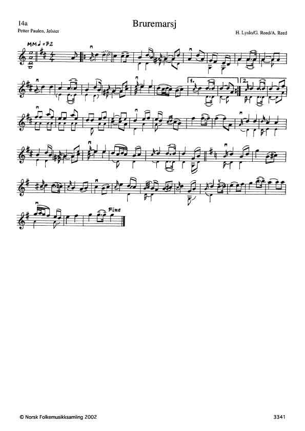 Både H. Lyslo, G. Reed og A. Reed angis som mulige kilder. "Eg spelte han i bryllaup i 20-års alderen".