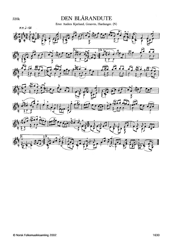 Den blårandute. Etter Anders Kjerland, Granvin, Hardanger. N. 1975. Td. 1488. Kjerland lærte slåtten av Arne Bjørndal.