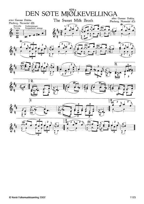 (Den søte mjølkevellinga) Ø. 44. Oppskr. 1926. Dokka hadde lært slåtten av far sin, Knut Dokka, som hadde han etter Knut Fossli. Namnet truleg etter eit slåttestev.