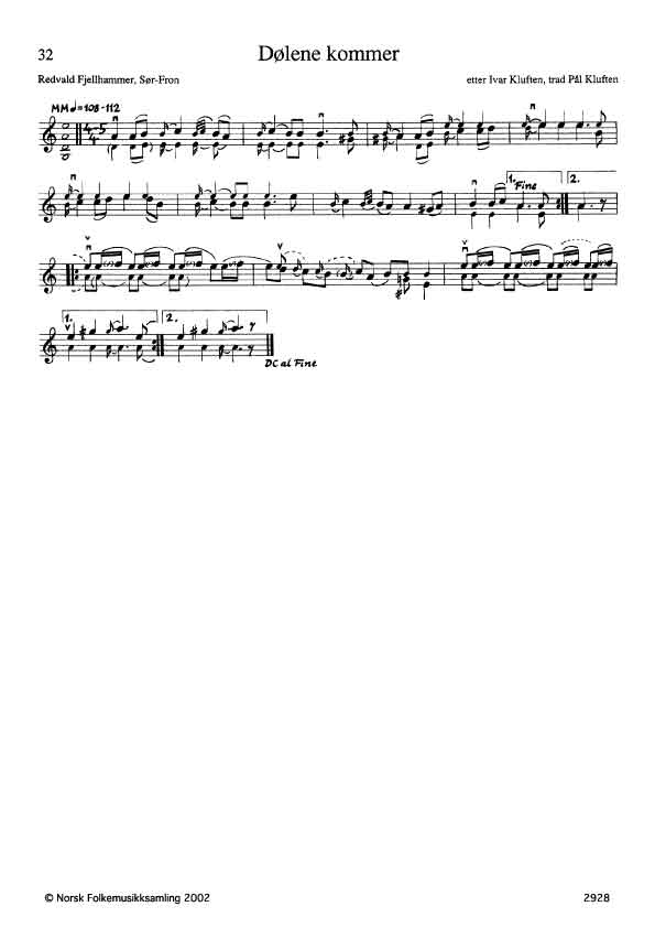 Første del er variant av den vanligste melodien til Sinclar-visa, trykt i Lindeman 1841 nr. 7, og på nytt i Lindeman l853-67, nr. 271. Melodien er en vandremelodi kjent både i Danmark og Sverige, se Gaukstad s. 24.