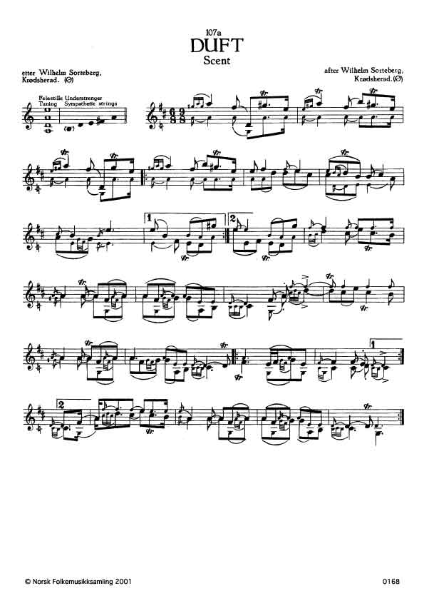 (Duft) Ø. 55. Oppskr. 1922. Lars Fykerud laga slåtten. Halvor Borgen d.e. sette namnet på han etter ein tråvar han hadde som heitte Duft. 107a-e er variantar.