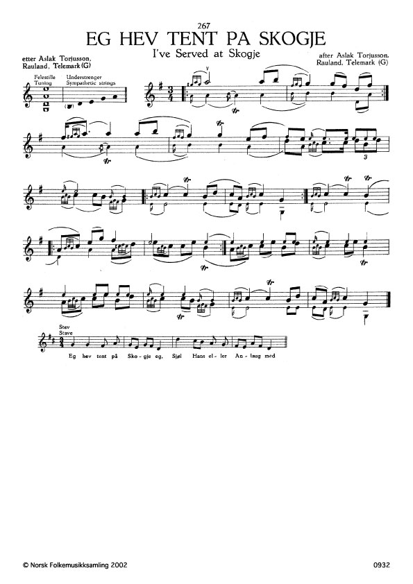 (Eg hev tent på Skogje) G. 681. Oppskr. 1922. Skogje er ein gard i Rauland, Telemark.