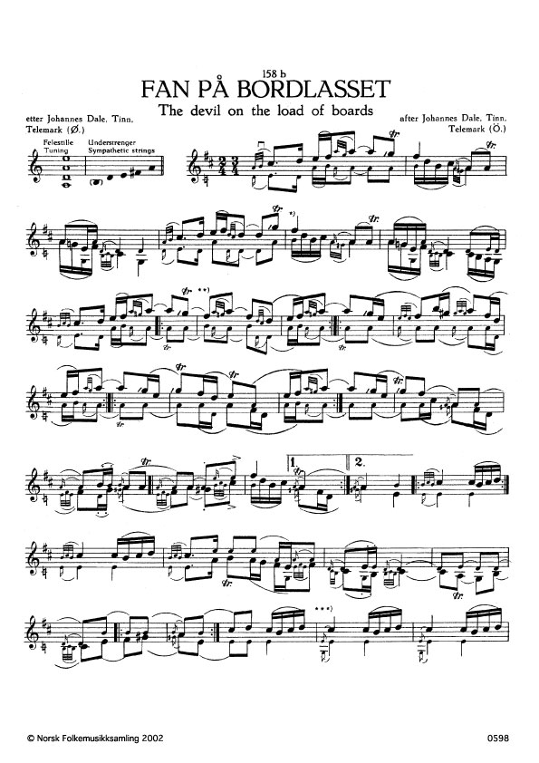 (Fan på bordlasset) Ø. 297. Oppskr. kring 1937. Dale hadde slåtten etter bestefar sin, Knut Dale, Tinn, Telemark. Slåtten vert og kalla "Fan på tømmerlunna". Garden Heibø ligg ovanfor Notodden før Mehei-vegen til Kongsberg byrjar. Opp for Heibø renn ei å der det i gamle dagar var ei sag og fleire mylner. På Heibø var det ein gut som spela fele, og ein dag han køyrde bord frå saga, såg han ein mann sitja oppe på bordstabelen og spela. Det var Gamle-Erik. Då guten kom heim, tok han fela og spela slåtten han hadde høyrt av "Fan på bordstabelen". Myllarguten kjende sikkert noko av denne slåtten før han kom til Vestlandet, men det er lite truleg at det er frå Vestlandet denne slåtten fyrst er komen. (Dette avstytt frå eit notat av Truls Ørpen etter eit brev frå Johannes Tveitan, Tinngrend 24.9. 1950.)