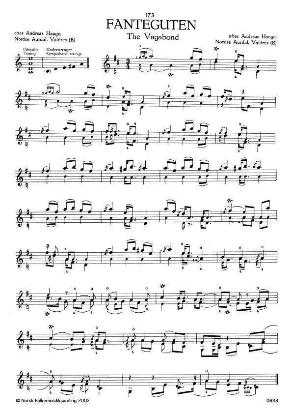 (Fanteguten) B. 2170. Oppskr. 1947. Hauge hadde slåtten frå "Gamle Syndin", truleg namn på ein spelemann frå same bygda (Nordre Aurdal, Valdres). Svipar litt inn på "Nordfjorden", telemarksforma.