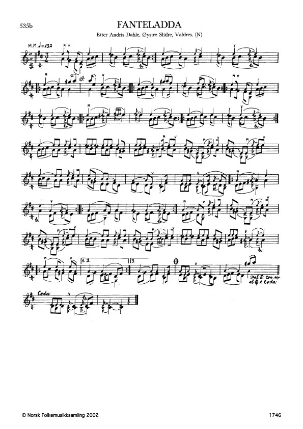 Fanteladda. Etter Andris Dahle, Øystre Slidre, Valdres. N. 1977. Td. 1684. Dahle lærte slåtten av sin bestefar, Ivar Ringestad. Jfr. band 5 nr. 325.