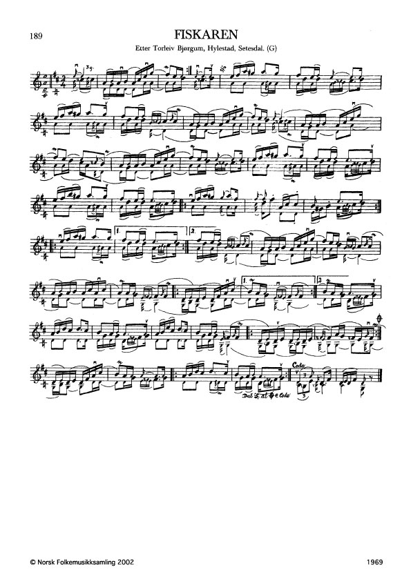 Fiskaren. Etter Torleiv Bjørgum, Hylestad, Setesdal. G. 1776, 1968, etter privatopptak. Jfr. band 2 nr. 104.