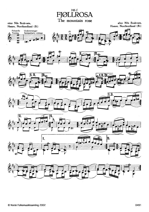 (Fjøllrosa) B. 1616. Oppskr. 1942. Brakvatn hadde lært slåtten av Per Mæle, Haus, Nordhordland, som hadde han frå ein numedøl.