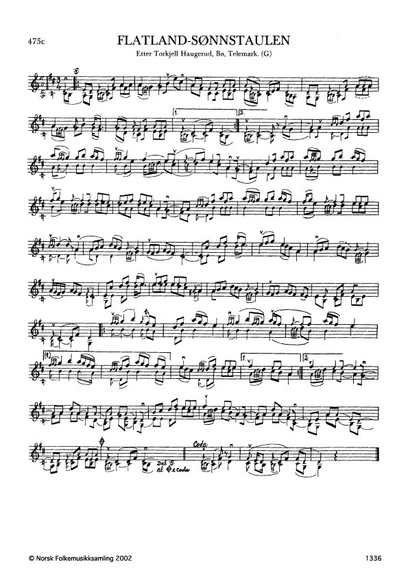 Flatland-Sønnstaulen. Etter Torkjell Haugerud, Bø, Telemark. G. 1382, 1961. NRK magn. 53259. Jfr. Nordbø 81.