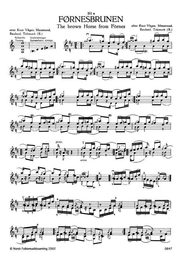 (Førnesbrunen) B. 819. Oppskr. 1947. Vågen hadde slåtten etter Ketil Håvardsson (son til H. Gibøen), Rauland, Telemark, som atter hadde lært han av far sin.