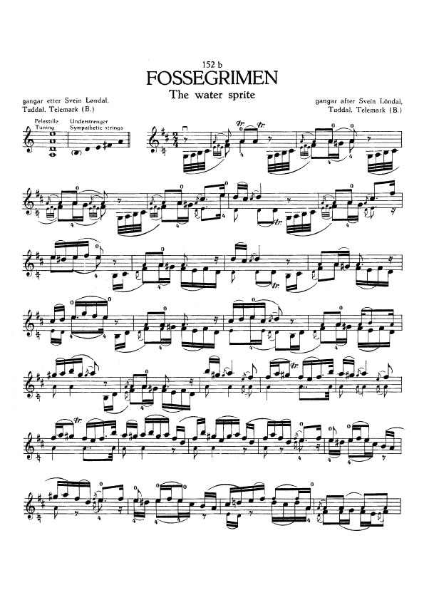 (Fossegrimen) B. 1054. Oppskr. 1937. Løndal hadde lært slåtten av Knut Dale, som truleg hadde han anten frå Myllarguten eller Håvard Gibøen.