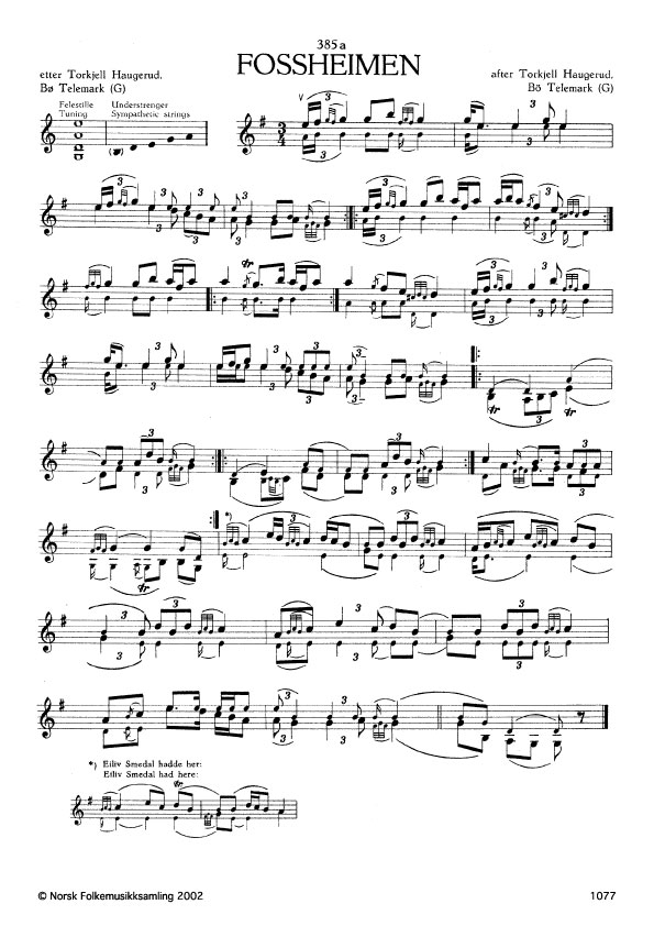 (Fossheimen) G. 43. Oppskr. 1939 etter opptak i NRK. Fossheim var ein spelmann frå Flatdal, Telemark.