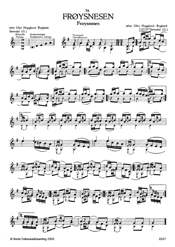 (Frøysnesen) G. 15. Oppskr. 1942. Slåttenamnet etter spelmannen Torkjell G. Frøysnes, Setesdal.