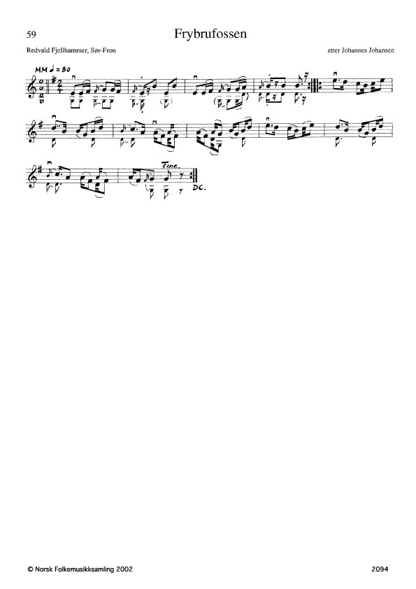Hørte slåtten første gang som smågutt da faren kom hjem fra fjellet. Han hadde stoppet ved en foss og ville prøve fisken. Plutselig fikk han høre musikk i fossen. "Dette vart'n meir hell førundra på og sto der så han lærde melodien. Je var no heme da han kom hematt. Han var alldeles forstyrra før'n fekk til fela og kunne byne å spelle det inn. Det var en slått så fremman at je hadde no aldri hørt'n for ørom før."