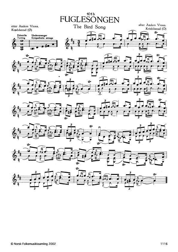 (Fuglesongen) Ø. 23. Oppskr. 1923. Vinna hadde slåtten frå Knut Fosslia, Krødsherad. Jfr. G. 516.