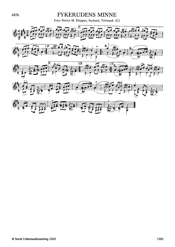 Fykerudens minne. Etter Mattis M. Kleppen, Sauland, Telemark. G. 704, 1921. Denne slåtten vart ofte spela av Lars Fykerud, og er difor oppkalla etter han. Namnet Livius Smiths minne blir og broka.