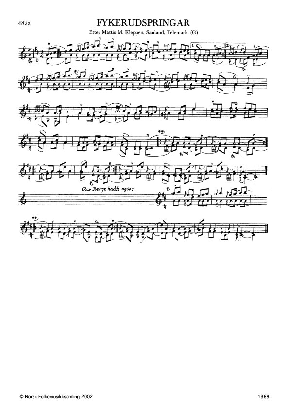 Fykerudspringar. Etter Mattis M. Kleppen, Sauland, Telemark. G. 692, 1921. Kleppen hadde lært slåtten av Lars Fykerud, Sauherad.