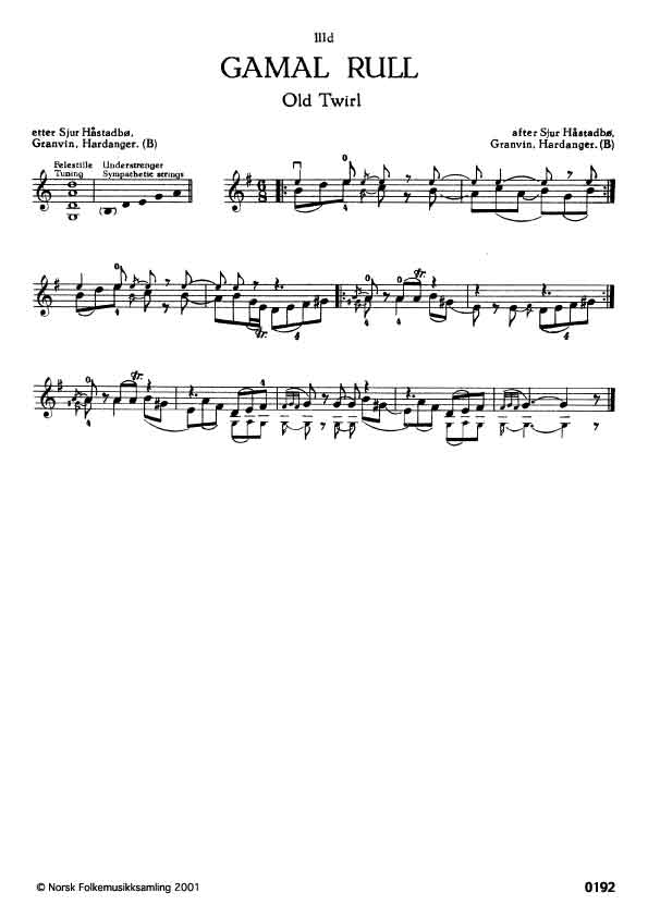 (Gamal Rull) B. 994. Oppskr. i 1940-åra. Sjur Håstadbø hadde slåtten etter farbror sin Ola Håstadbø som atter hadde lært han av Nils Rekve, Vossestrond.