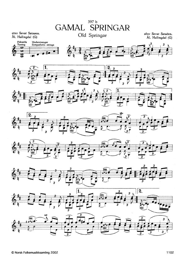 (Gamal springar) G. 1447. Oppskr. 1961 etter opptak i NRK. Sataøen hadde slåtten etter O. A. Strand, Ål, Hallingdal. Slåtten svipar inn på nr. 231 i denne serien band IV.