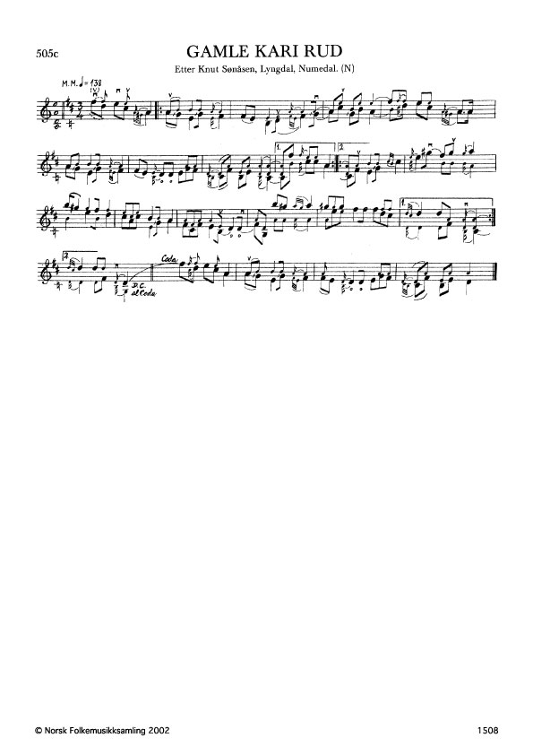 Gamle Kari Rud. Etter Knut Sønåsen, Lyngdal, Numedal. N. 1976. Td. 1535.