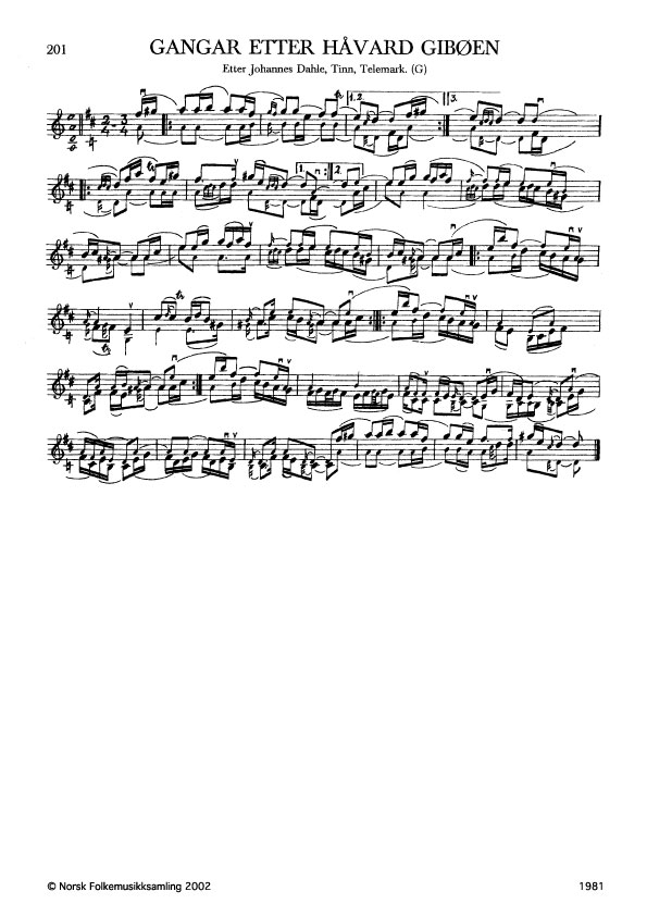 Gangar etter Håvard Gibøen. Etter Johannes Dahle, Tinn, Telemark. G. 1872, 1970. NRK magn. 1979. Jfr. band 3 nr. 151.