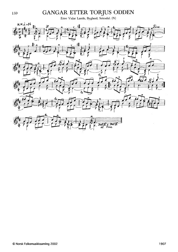 Gangar etter Torjus Odden. Etter Vidar Lande, Bygland, Setesdal. N. 1978. Td. 1862. Lande lærte slåtten på Sandnes.