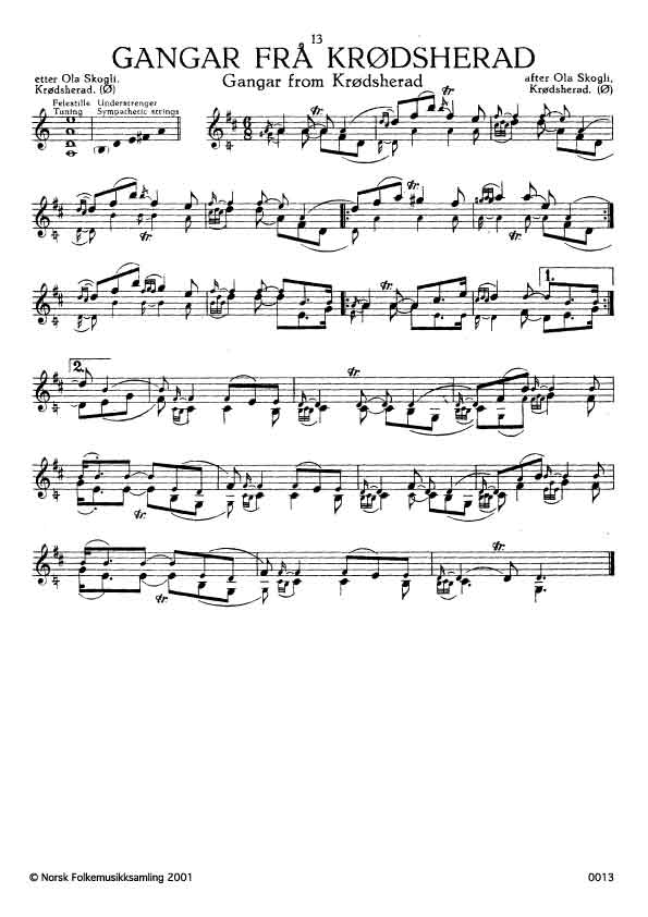 (Gangar) Ø. 183. Oppskr. 1920. Skogli hadde slåtten etter far sin, Gunnar Haugen, som var keivspelmann, og han hadde lært han av Knut Fosslia (sjå nr. 6), alle Krødsherad.