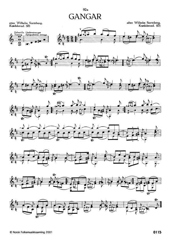 (Gangar) Ø. 5. Oppskr. 1915. Sorteberg hadde slåtten truleg etter Torkjell Haugerud, Bø, Telemark. 92a-c er variantar.