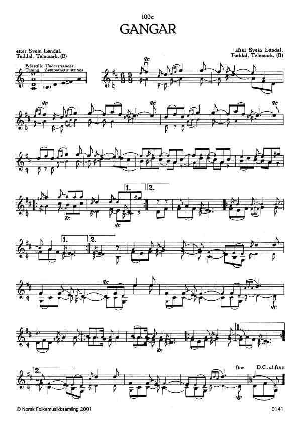 (Gangar) B. 803. Oppskr. 1936. Løndal hadde slåtten etter Knut Dale, Tinn, Telemark, og denne hadde han truleg etter Knut Lurås.