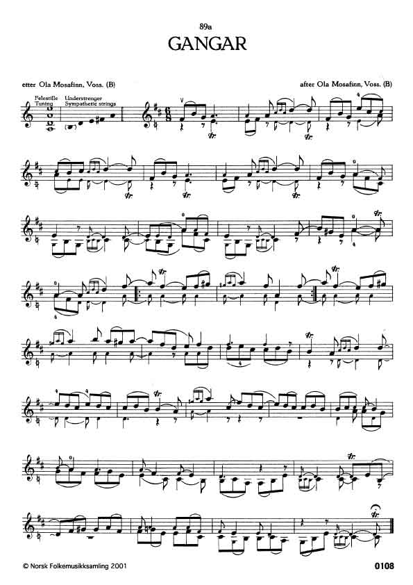 (Gangar) B.N.SI. 34. Oppskr. 1912. Mosafinn lærde slåtten 1850 av Ola Håstadbø, Granvin, Hardanger. 89a og b er variantar.