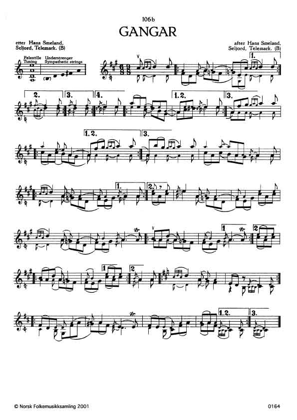 (Gangar) B. 156. Oppskr. 1917. Smeland hadde slåtten etter Kjetil Håvardson, son til Håvard Gibøen, Rauland, Telemark.