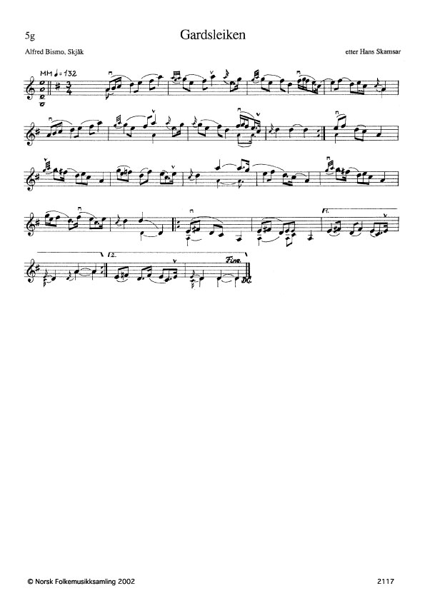 Hans Skamsar hadde to slåtter han kalte Gardsleiken, jf. nr. 191.