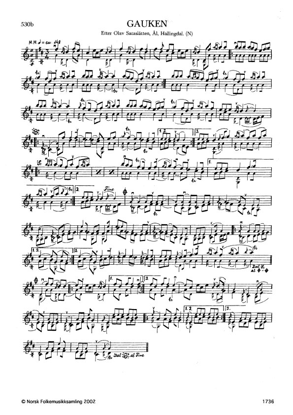 Gauken. Etter Olav Sataskåtten, Ål, Hallingdal. N. 1978. Td. 1939. Jfr. band 6 nr. 455.