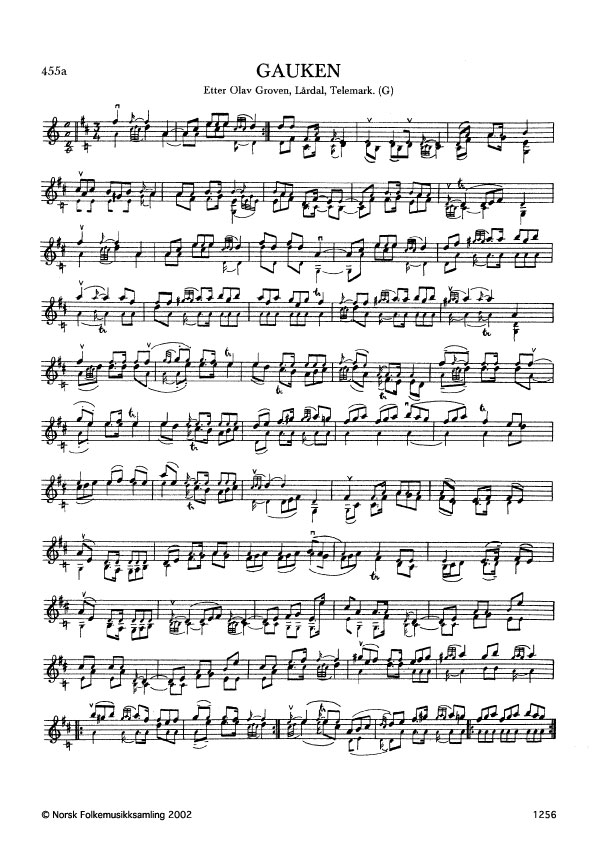 Gauken. Etter Olav Groven, Lårdal, Telemark. G. 719, 1923. Jfr. B. 599. Olav Groven hadde slåtten etter Knut Vindal, Seljord, Telemark.