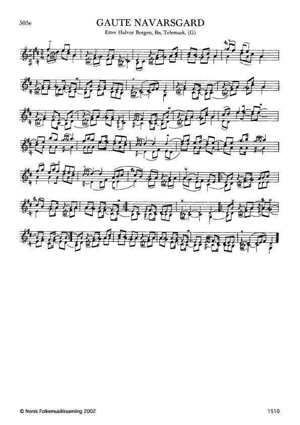 Gaute Navarsgard. Etter Halvor Borgen, Bø, Telemark. G. 613, 1922. Jfr. Nordbø 59. Groven skreiv slåtten opp etter minne frå ei grammofonplate. Det finst mange soger om Gaute Navarsgard i Seljordsoga, band 1. Dessutan er det dikta mange stev og viser om han. Gaute Navarsgard var frå Møsstrond. Han var m.a. kjend for å driva med trolldom.