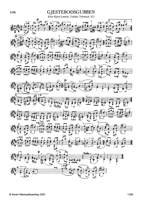 Gjestebodsgubben. Etter Kjetil Løndal, Tuddal, Telemark. G. 1151, 1959, NRK magn. 1894. Løndal spelar slåtten i form etter far sin, Svein Løndal.