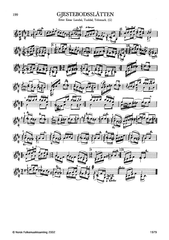 Gjestebodsslåtten. Etter Einar Løndal, Tuddal, Telemark. G. 1901, 1972. NRK magn. 54154. Slåtten er etter Lars Fykerud, Sauherad. Jfr. band 2 nr. 141.