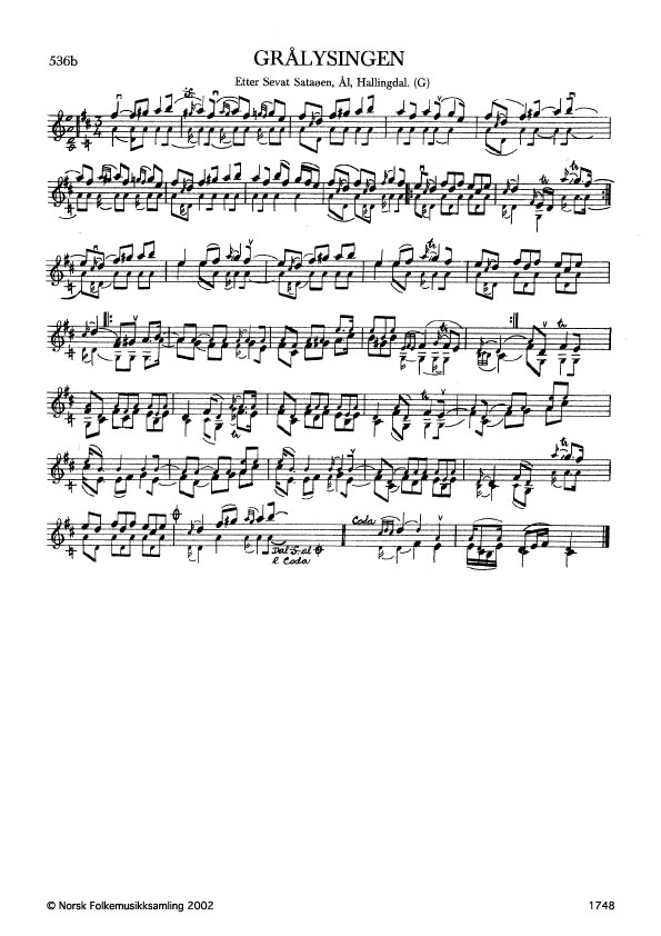 Grålysingen. Etter Sevat Sataøen, Ål, Hallingdal. G. 1750, 1966. Sataøen hadde slåtten etter Tor Grimsgard, Nes. Dei bruka denne slåtten på morgonsida.