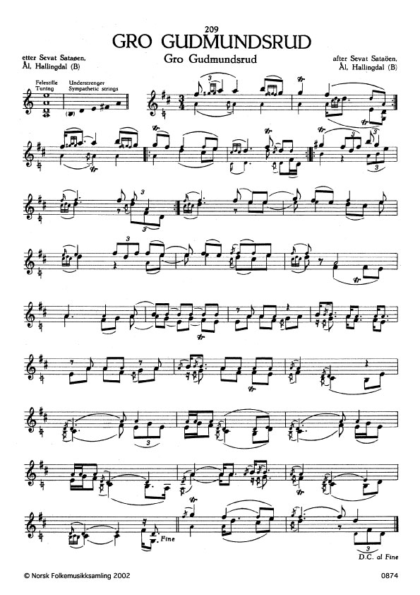 (Gro Gudmundsrud) B. 2145. Oppskr.1947. Sataøen hadde lært slåtten av Ola Strand, Ål, Hallingdal, som atter hadde han frå sambygdingen Knut Aslesen Strand. Slåttenamnet er etter Gro Gudmundsrud frå Ål. Ho levde fyrst på 1800-talet og var glup til å dansa.