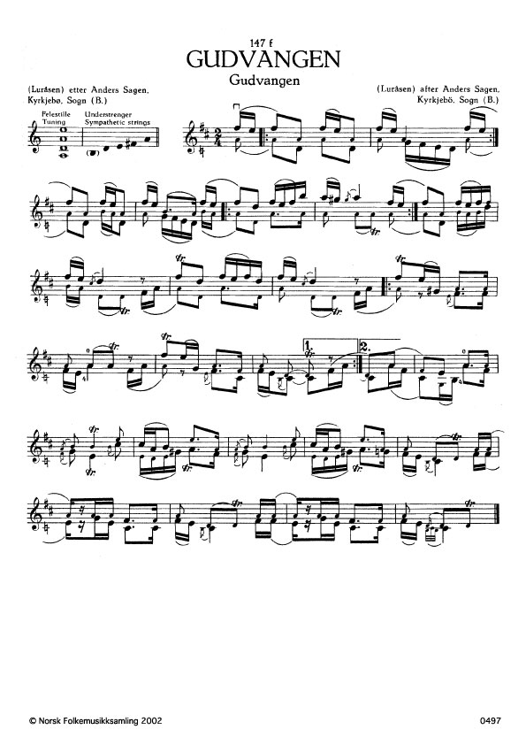 (Gudvangen) B. 543. Oppskr. 1917. Sagen lærde slåtten av Rognald Berge 1840. Denne hadde han frå Knut Lurås 1835. I Sogn kallar dei og ofte slåtten "Luråsen".