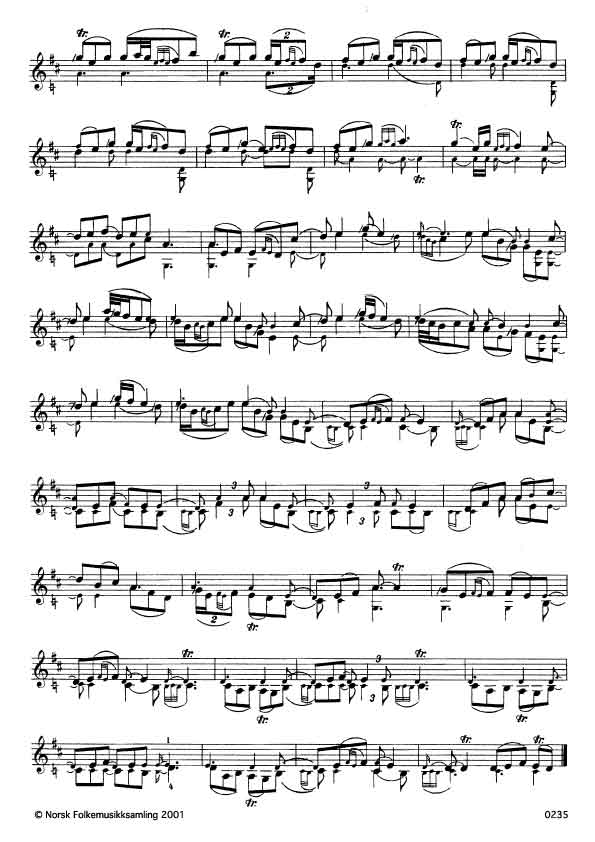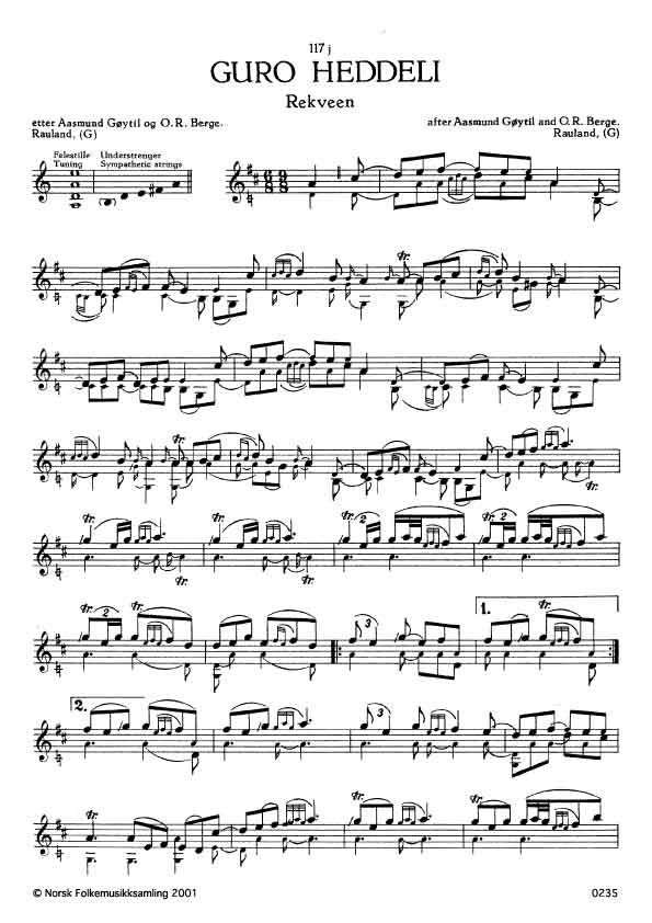 (Guro Heddeli) G. 402. Oppskr. 1917. Gøytil hadde lært slåtten av Olav Sigurdson, soneson til Myllarguten. Oppskrifta her er mest slik Olav Groven, Lårdal, hadde slåtten, og Olav R. Berge, Rauland, spela han på lag likeins.