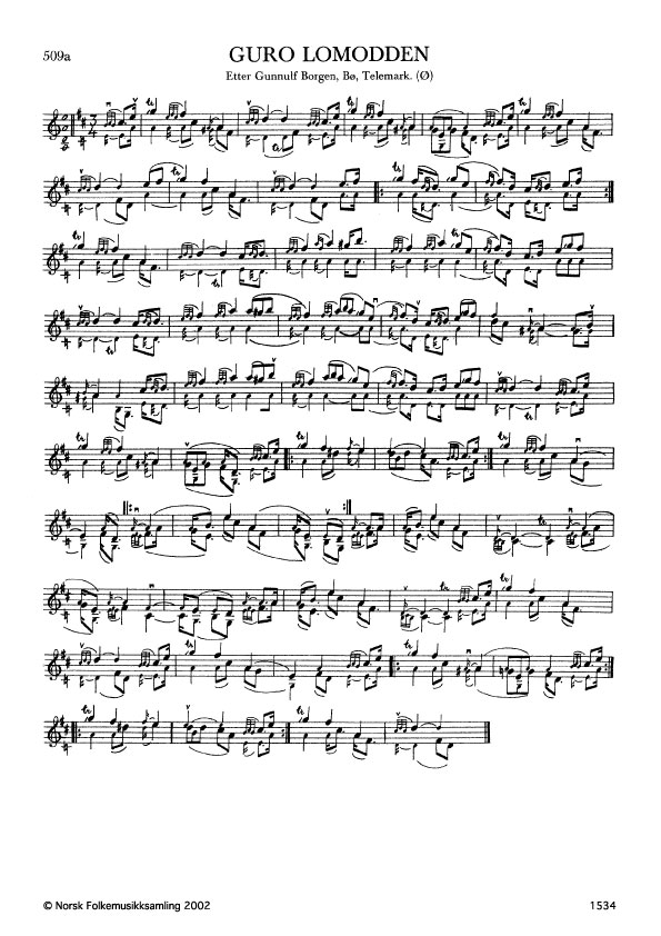 Guro Lomodden. Etter Gunnulf Borgen, Bø, Telemark. Ø. 369, 1939. Borgen hadde slåtten etter Lars Fykerud, Sauherad. Sjå merknad til 498e i dette bandet.