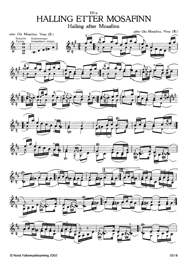 (Halling etter Mosafinn) B.N.SI. 29. Oppskr. 1908. Mosafinn hadde slåtten etter Isak Rokne, Voss, Hordaland. Slåtten er ein ekte vestlandsslått. Han er frå Hardanger, men var og mykje spela i Suldal, Rogaland, og er og kalla Suldølen.
