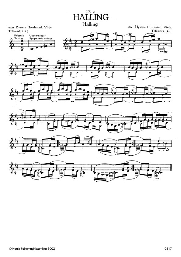 (Halling) G. 384. Oppskr. kring 1920. Siste taket i slåtten minner om "Prestegangaren".